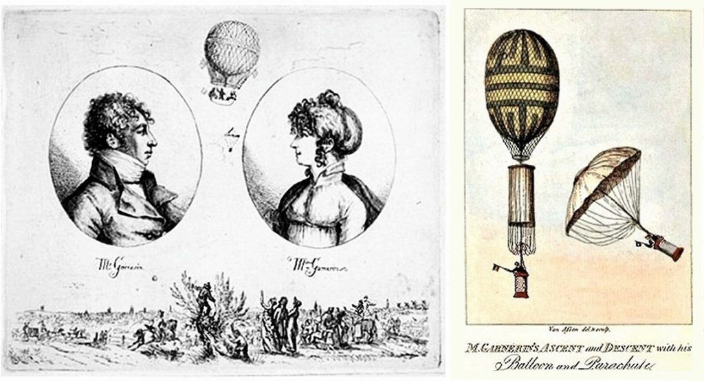 La francesa Jeanne Geneviève Labrosse fue la primera mujer en descender en un paracaídas en 1799, mientras que la italiana Paola del Din lo hizo como partisana durante la Segunda Guerra Mundial. Los primeros intentos datan de mucho antes, como el del andalusí Abbás Ibn Firnás en el año 852, quien solo sufrió heridas leves al aterrizar.