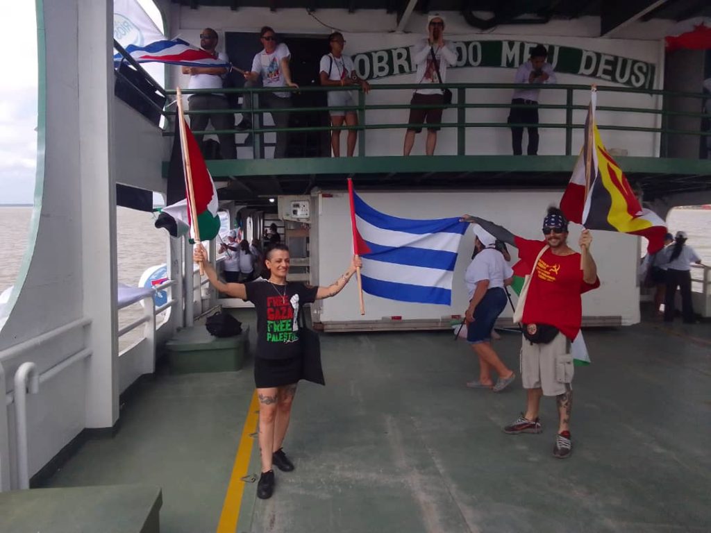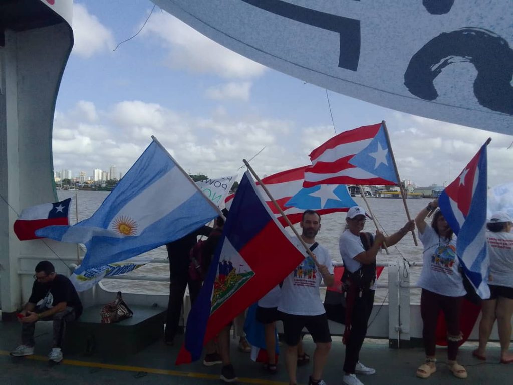 Mas de mil personas participaron en una baqueada (regata, en español) cargada de simbolismo. El recorrido inició en el extremo norte de la ciudad hasta la altura de la Universidad de Belém. Las vistas desde las embarcaciones permitieron observar el contraste entre la urbanización y las viviendas de pueblos originarios de la región.