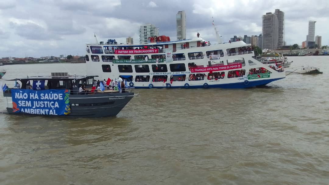 Mas de mil personas participaron en una baqueada (regata, en español) cargada de simbolismo. El recorrido inició en el extremo norte de la ciudad hasta la altura de la Universidad de Belém. Las vistas desde las embarcaciones permitieron observar el contraste entre la urbanización y las viviendas de pueblos originarios de la región.