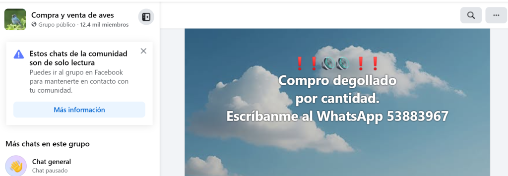 Las redes están llenas de propuestas. A veces no se ve la cara de los voceadores; otras, se muestran a cámara, se exhiben sin el más mínimo remilgo, se vanaglorian de sus capturas, compiten a ver quién se lleva más. Se sienten seguros. Los perfiles de Facebook no esconden los nombres (negritos de Ciego de Ávila; Cazadores nueviteros…); se ponen precios, se regatea, se compra y vende.