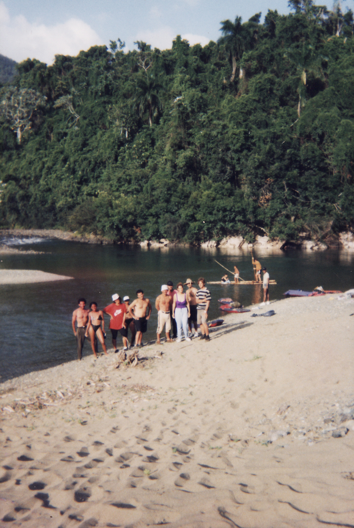 La flotilla navegante, con el Chocky de guía, se fue estirando a lo largo del río. Terminando la mañana, comenzaron a pasar el mayor chorrero del Jaguaní y concluyeron el cruce sin grandes contratiempos. Realmente, lo que había a todo lo largo del río era un reguero de malnombristas; nuevamente los ponches se llevaban el protagonismo de la jornada. Joel seguía arrastrando a su maltrecho “Sultán”. Maribel y Karina también iban a la zaga, teniendo a sus balsas en mal estado.