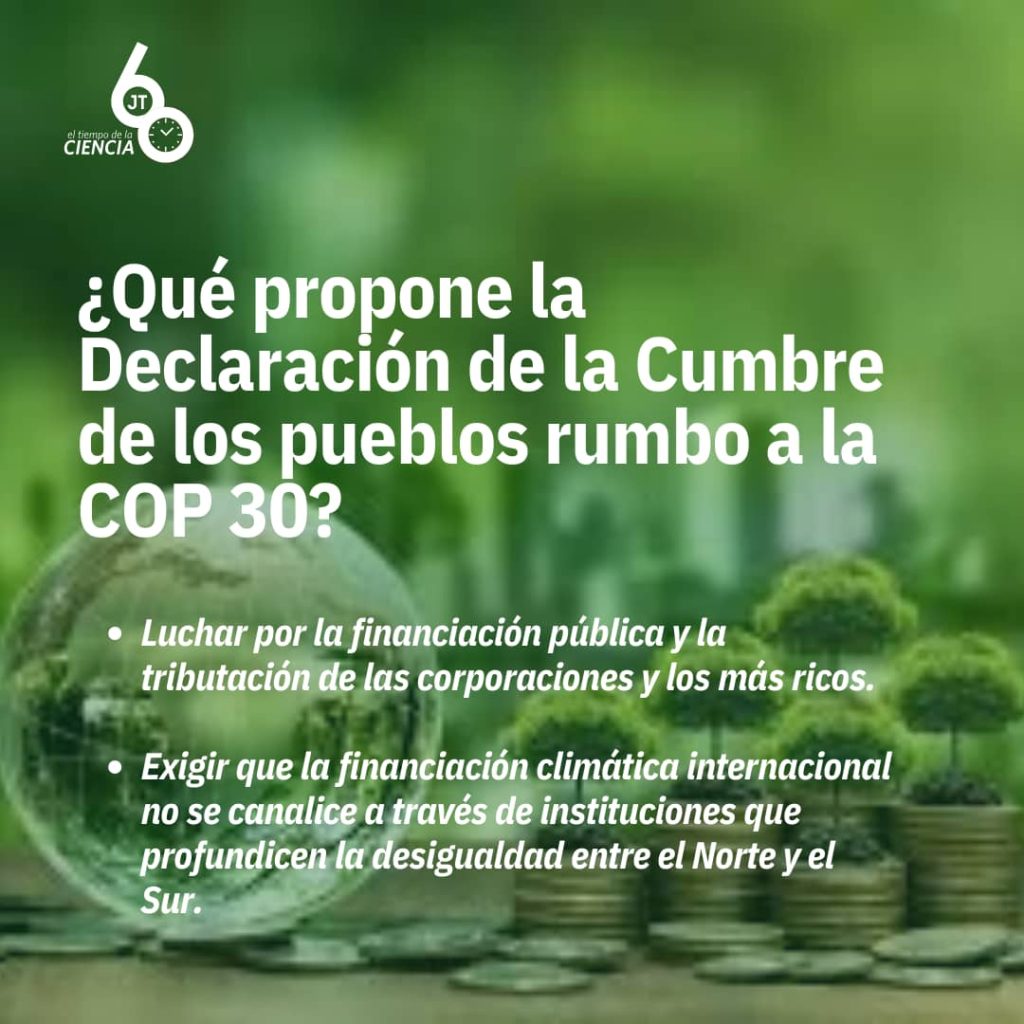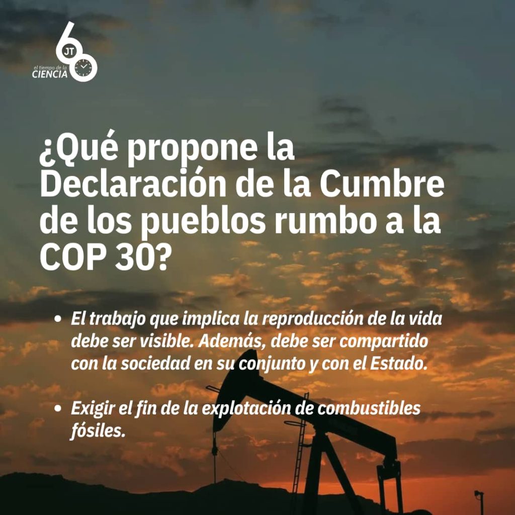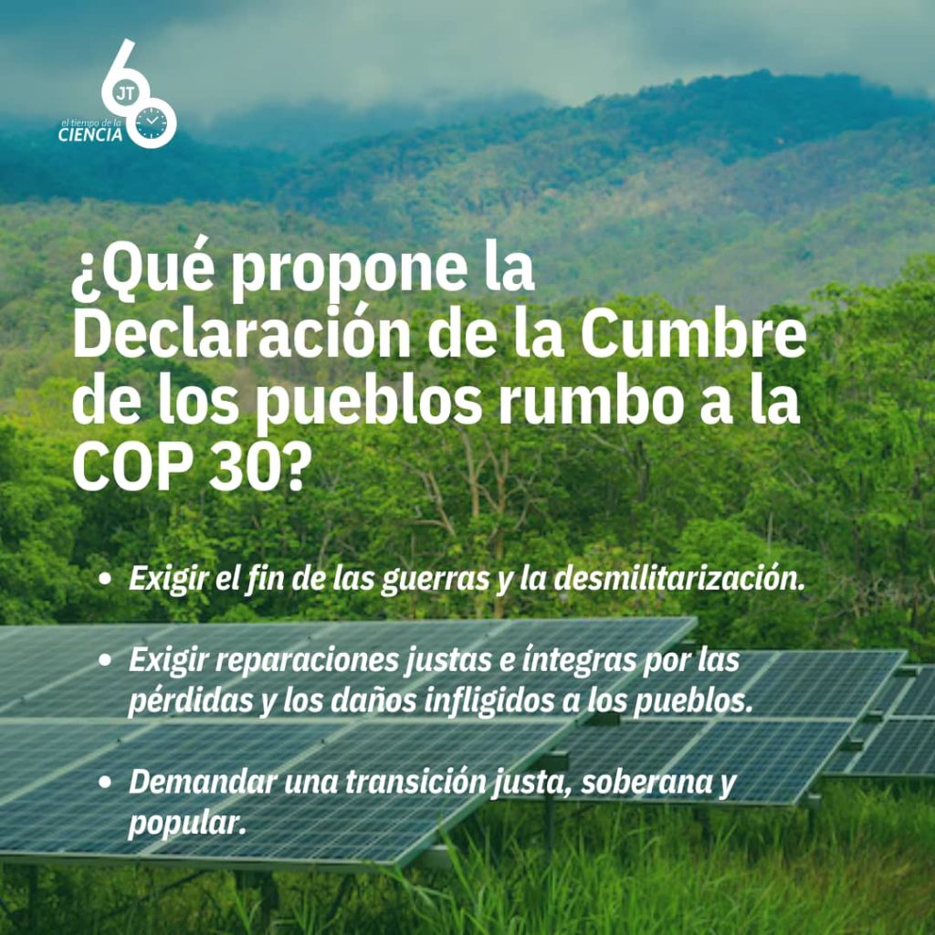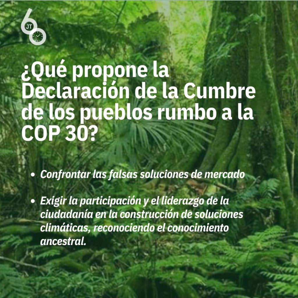 El documento resume el sentir de las más de 70 mil personas que participaron en la Marcha Global por el Clima, tanto en Belem, como en otras ciudades del mundo: “pueblos originarios y tradicionales, campesinos, indígenas, sindicalistas, personas sin hogar, mujeres, la comunidad LGBTQIAPN+, jóvenes, afrodescendientes, habitantes del bosque, del campo, de las periferias, de los mares, ríos, lagos y manglares…
