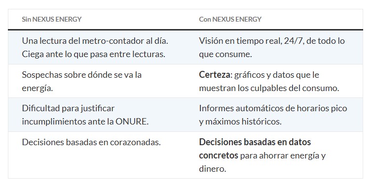 La lectura del metro-contador le dice cuánto consumió en total. NEXUS ENERGY le dice dónde, cuándo y por qué.
