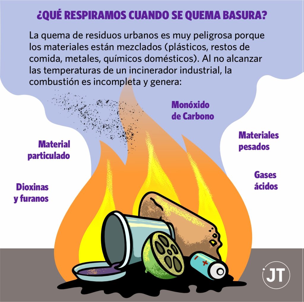 “Al quemar desechos (plásticos, baterías, electrónicos) se liberan metales pesados y dioxinas. Estas sustancias atraviesan la barrera protectora del cerebro (barrera hematoencefálica)”.