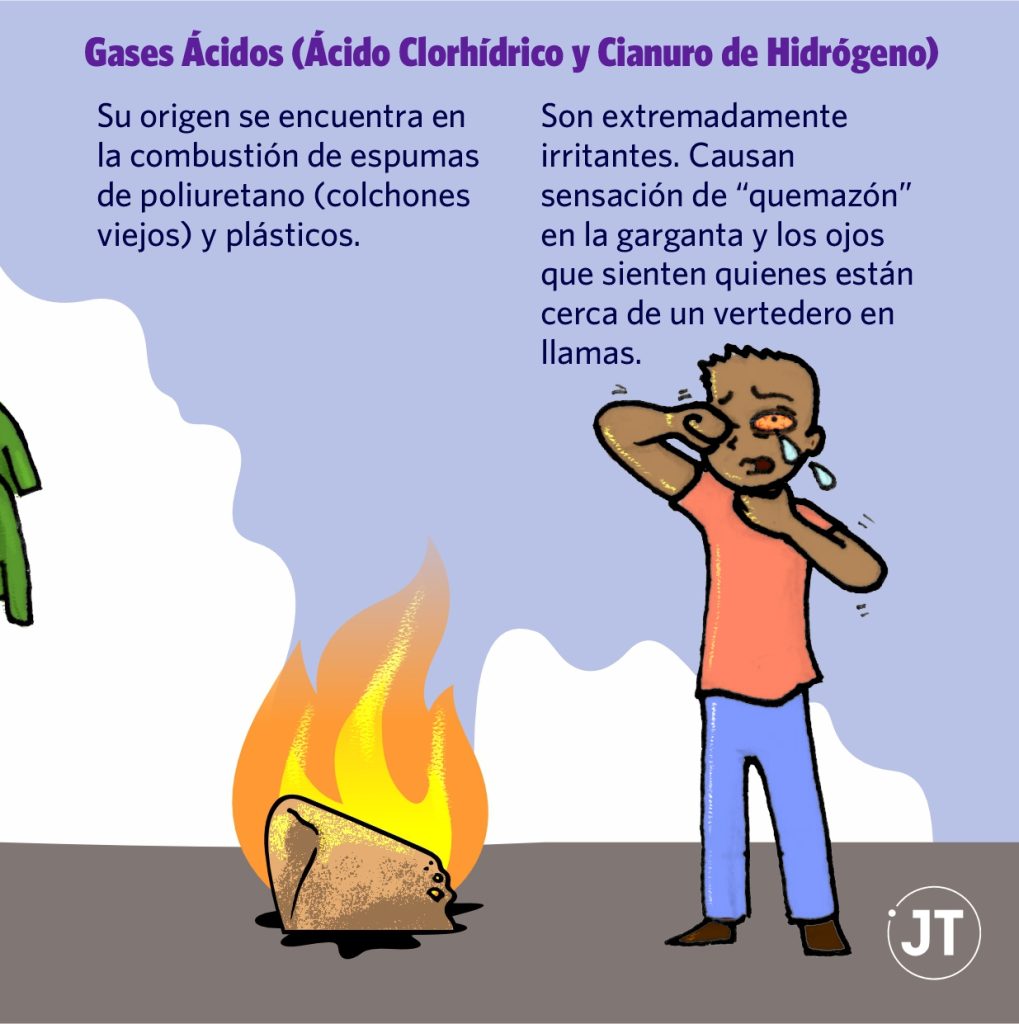 No es un incendio accidental, comenta la joven, sino la quema de la basura acumulada en algunos lugares, práctica que se ha tornado rutina; sus emanaciones tóxicas afectan a toda la comunidad.