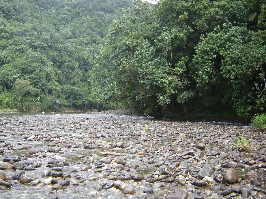Aunque la corriente era algo más estrecha que la del Jaguaní, no quedé convencido y me dirigí a la orilla derecha, pasando la desembocadura. Dejé la balsa sobre la arena y caminé aguas arriba, por la orilla izquierda del supuesto “arroyo”. Tras avanzar unas decenas de metros, las dudas se me despejaron: aquello era el Toa, que llegaba subrepticiamente a su encuentro con el Jaguaní, como para que nadie imaginara lo tremendamente accidentado de su cauce aguas arriba.