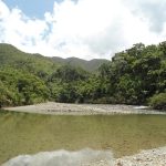 El camino se ensanchó y seguimos caminando paralelo al Toa. Más adelante aparecieron algunas pendientes cerca de la boca del Quibiján, pero el camino no llegaba hasta la desembocadura. Siguiendo por zona boscosa, pasamos un arroyo, subimos una pendiente y descendimos hasta la orilla del río Quibiján, dejando a la izquierda el Toa.