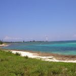 A la izquierda se extiende la playa en una larga ensenada. Adentro, el agua profundiza un poco al principio, y la notamos revuelta por los sargazos. Una barrera coralina a lo largo de la playa, que culmina por la derecha en el cayito, nos mostraba algunos riscos sobre la superficie del mar.