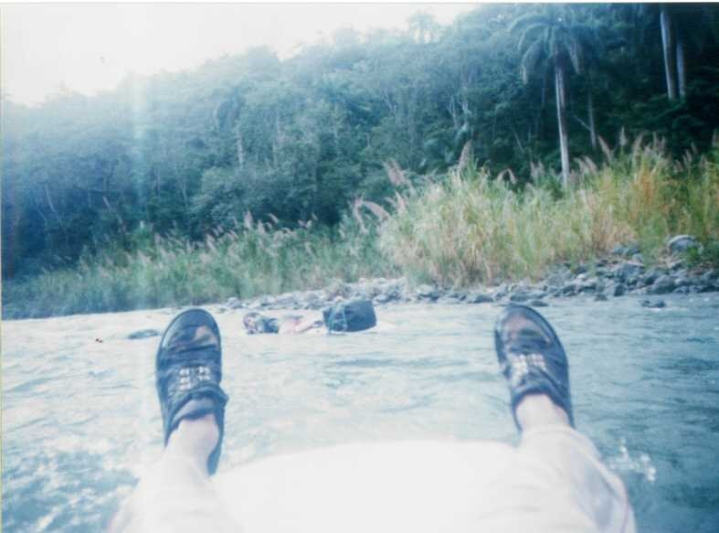 Los 16 que viajábamos en camión llegamos por fin a Bernardo de Yateras. Al bajarme, salí corriendo por la Vía Mulata en busca del camino que lleva al río, pero un guardia vestido de verde olivo me detuvo. El hombre me apartó a un lado de la carretera y comenzó a preguntarme quiénes éramos, que estábamos haciendo y otras cosas de ese tipo. Pero el tiempo pasaba y yo tenía la preocupación de que el grupo delantero saliera a navegar. Le dije entonces a Adrián que fuera corriendo hasta el río, pues él había estado entre los que acampamos en aquella zona en el año 96.