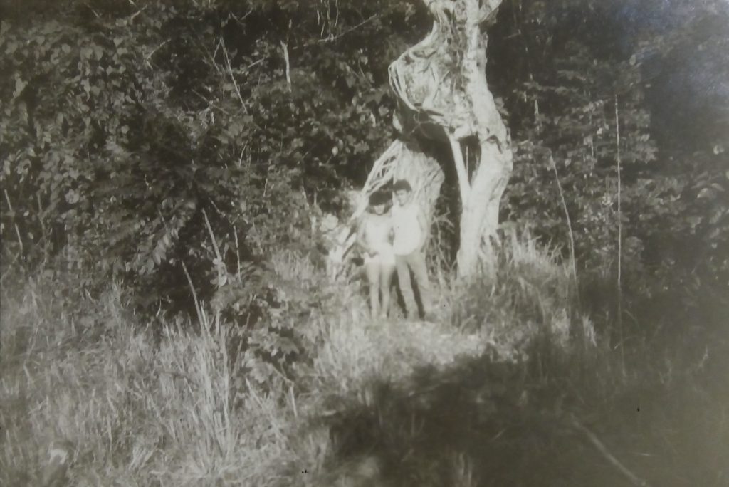 Mairelys y Osmell junto al árbol con la piedra levantada