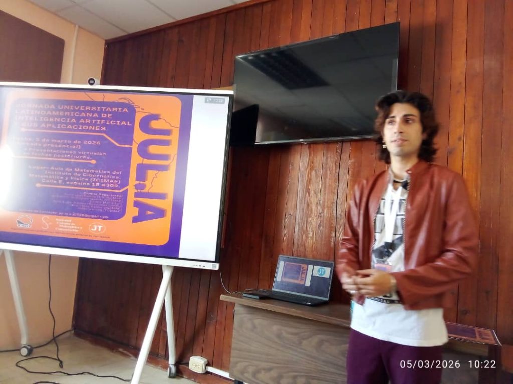 El Instituto de Cibernética, Matemática y Física (ICIMAF) acogió este jueves la Jornada Universitaria Latinoamericana de Inteligencia Artificial y sus Aplicaciones (JUL.IA), un espacio de intercambio académico y científico que reunió a investigadores, docentes y especialistas de la región, tanto de manera presencial como virtual, para debatir sobre los retos y oportunidades de la inteligencia artificial (IA).