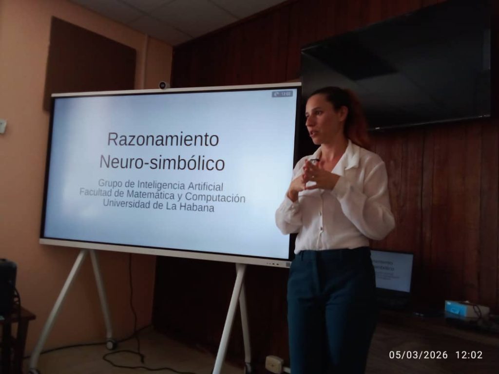 Una de las conferencias que despertó mayor interés fue la que ofreció la Dra. C. Suilán Estévez, decana de la Facultad de Matemática y Computación (MatCom) de la Universidad de La Habana, sobre lo que denominó razonamiento neurosimbólico, de las últimas tendencias en Inteligencia Artificial.