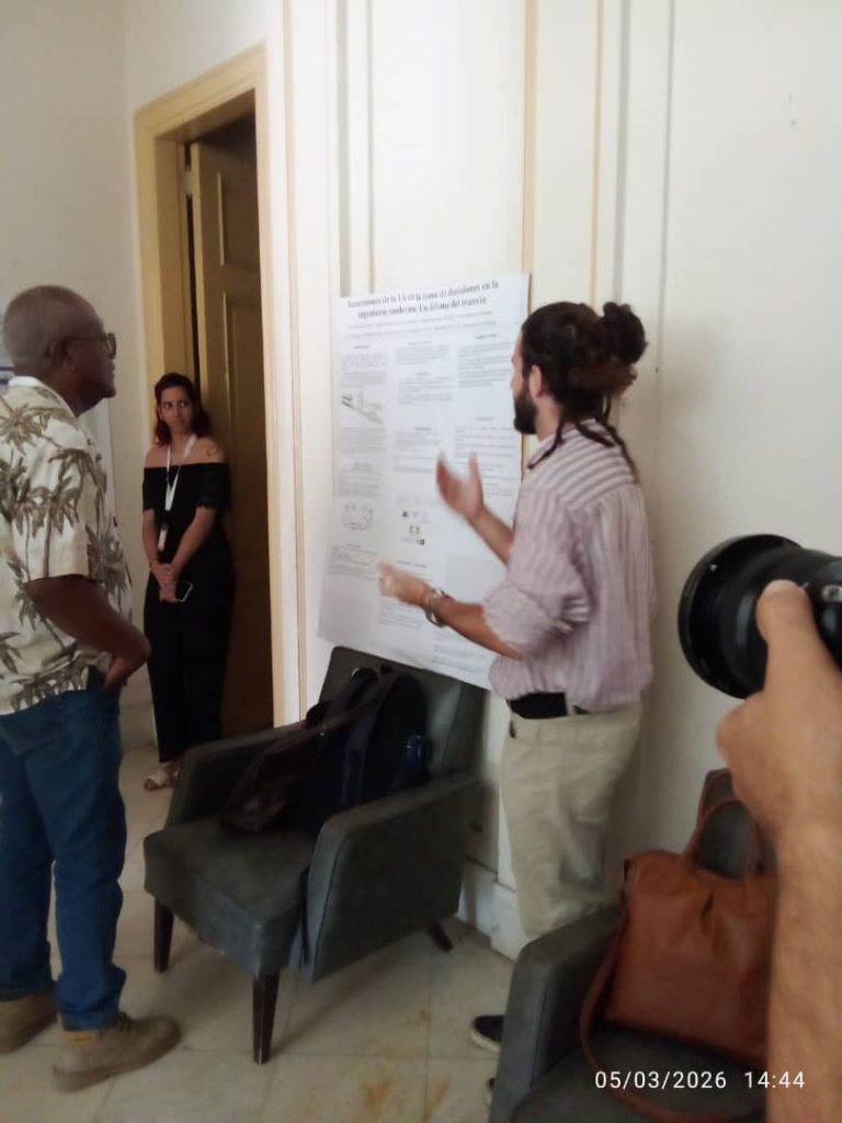 Isbel González, del Instituto Superior de Tecnologías y Ciencias Aplicadas y el Dr. Giovanni Fernández, de la Cátedra de Ciencia, Tecnología y Sociedad, de la UH, compartieron un trabajo sobre las incursiones de la IA en la toma de decisiones en la ingeniería moderna.