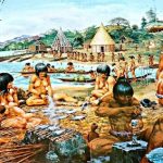 Cuando Cristóbal Colón llegó a América en 1492, las islas de las Antillas estaban llenas de comunidades de arahuacos asentadas a lo largo de valles, ríos y costas. Algunas aldeas de taínos llegaban a los miles de habitantes. Eran sociedades de una gran energía y creatividad, con un extraordinario repertorio de formas expresivas que abarcaban la escultura, cerámica, joyería, deportes, danza, música y poesía. Sus conceptos abstractos, inventiva y dinamismo se reflejaban en las jerarquías sociales y su organización política.[1]
