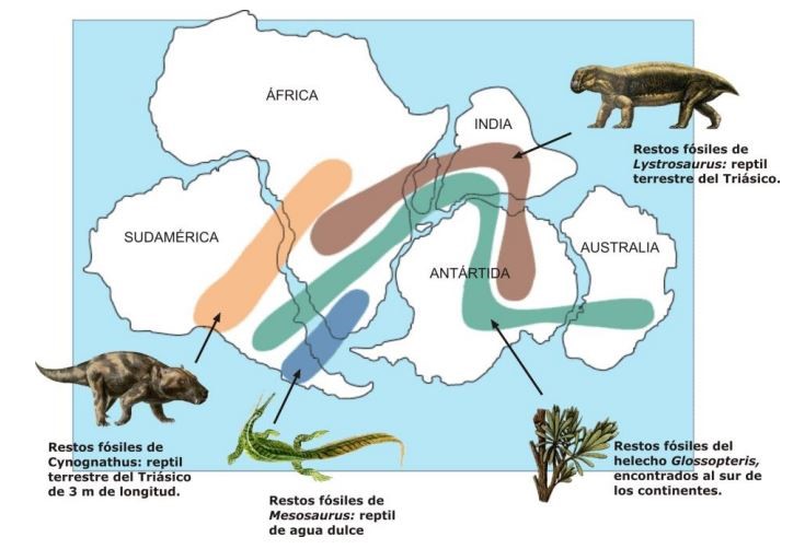 A principios del siglo XX, el geofísico alemán Alfred Wegener propuso la teoría de la deriva continental. Para ello se basó, inicialmente, en la forma en que encajaban las costas de África y Sudamérica, separadas por el Atlántico. En el desarrollo de la idea tuvo en consideración la distribución de ciertos cuerpos geológicos y de los fósiles que contenían las formaciones geológicas en ambos continentes.