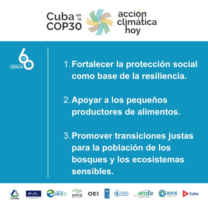 Cuba está presente en la COP30, en Belém, Brasil, con una representación de proyectos como AdaptaHabana y Mi costa, organismos, e instituciones diversas, como la Fundación Iris, bajo el liderazgo del Ministerio de Ciencia, Tecnología y Medio Ambiente, todos los cuales trabajan para el cumplimiento de los compromisos ambientales del país.