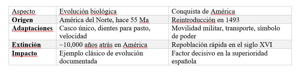 La historia del caballo es un puente entre biología y cultura: su evolución muestra la plasticidad adaptativa de los mamíferos, y su reintroducción en América revela cómo un animal puede cambiar el curso de la historia humana. En la conquista, el caballo fue tanto arma como símbolo, y su presencia consolidó el dominio europeo, pero también abrió caminos para nuevas formas de resistencia y mestizaje cultural.