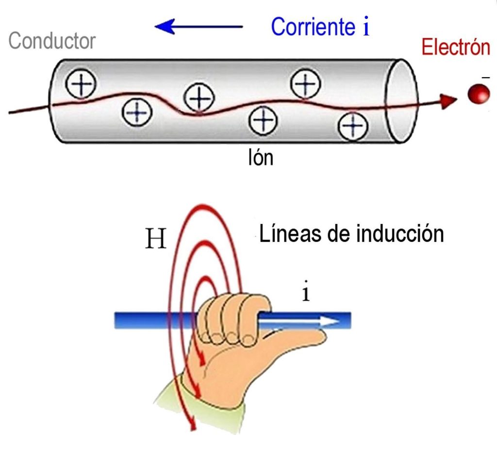 La explicación dada a la interacción corriente/brújula es que la primera crea un campo magnético invisible capaz de interaccionar con el imán de la brújula. Después se comprobó que las cargas eléctricas en movimiento y las corrientes siempre tienen un campo magnético asociado, que se suele representar por líneas de inducción de valor H.