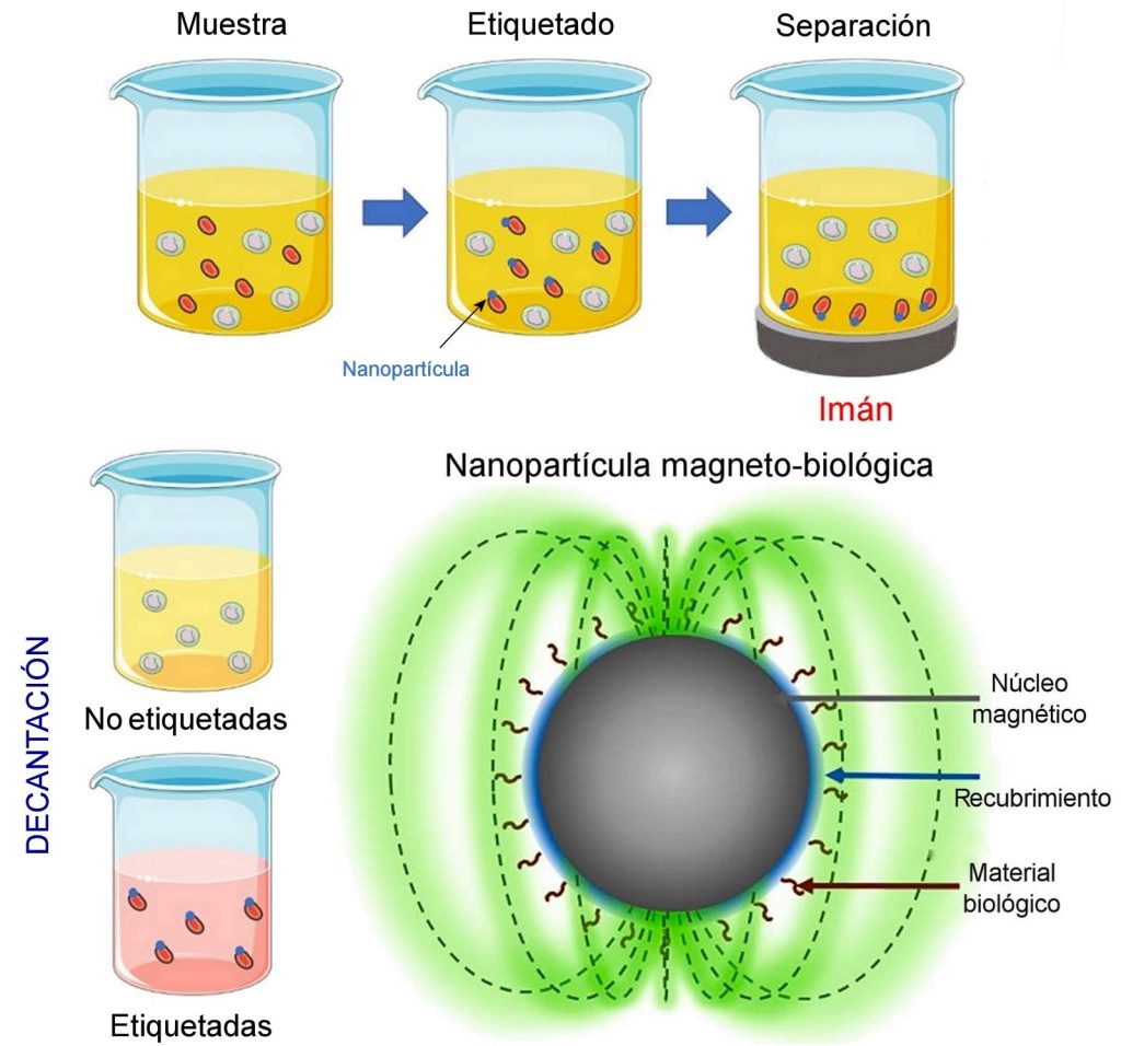 Esta técnica utiliza nanopartículas magnéticas para extraer entidades biológicas del medio complejo en que se encuentran; las entidades pueden ser células, enzimas o algunas otras. Tras marcar o etiquetar las entidades seleccionadas, éstas se separan de las restantes mediante algún dispositivo magnético, que puede ser algo tan simple como un imán. Una vez segregadas, es fácil extraerlas de la mezcla líquida que las contiene por decantación o de alguna otra forma (por ejemplo, recolectándolas en un flujo).