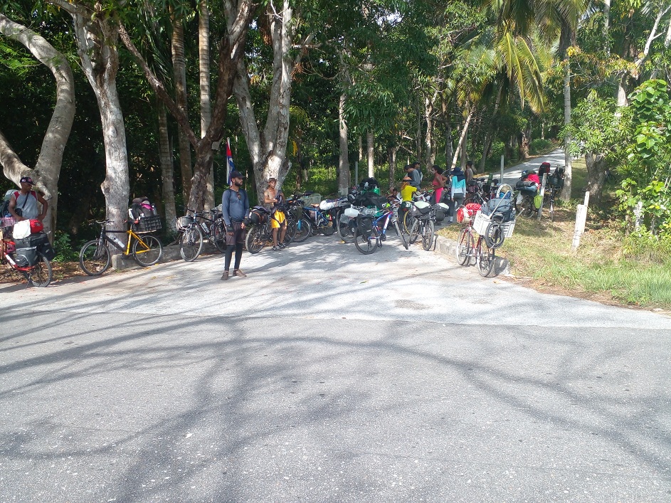Después de un baño mañanero en la playa El Colony, partimos a recorrer los 13 kilómetros que distancian a la quieta playa de la finca de Flora y Fauna de La Cañada, adonde llegamos sin grandes complicaciones, salvo el segundo ponche de Roberto. Allí nos esperaba Liset, la primera secretaria de la UJC municipal, junto a un grupo de jóvenes.