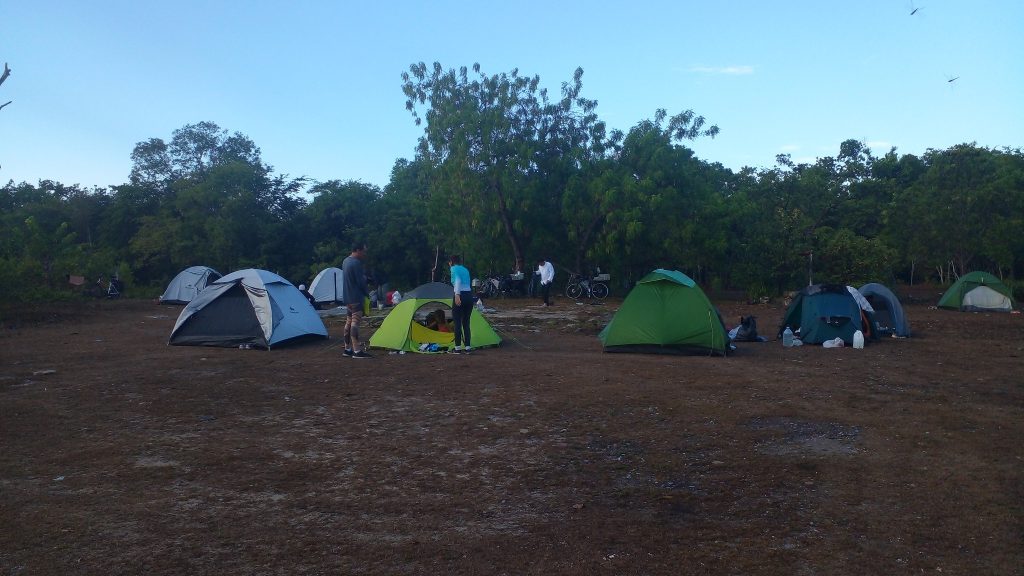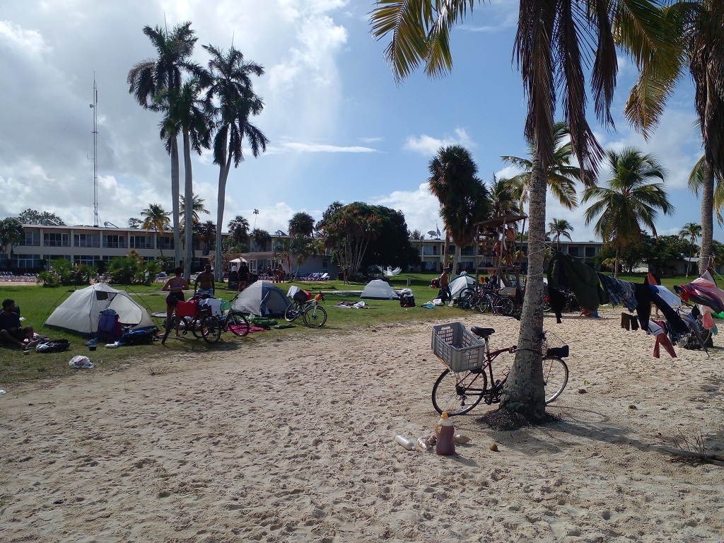 A la llegada del grupo a la playa El Colony, armamos las tiendas de campaña, justo en la parte trasera del hotel, entre matas de coco. Todo iba bastante tranquilo, hasta que con el inicio del oscurecer comenzaron a aparecer los jejenes y tuvimos que ponernos la vestimenta adecuada para reducir su acoso. También salieron a relucir los repelé.