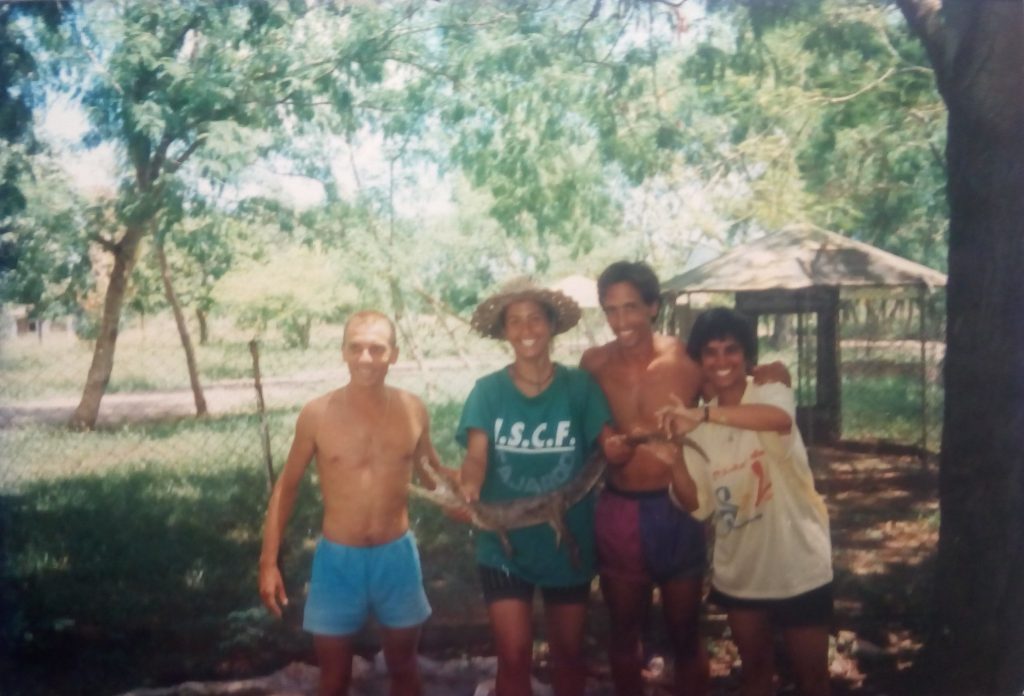 Después de instalados, los “pescadores” salieron a explorar el fondo de la playa. Estos eran Abelito, Oscar, Adrián y Hery. El primer hallazgo significativo fueron unas lajas apoyadas sobre el fondo, con unos escalones que las levantaban. Y, allá adentro, en el espacio creado entre las lajas y el fondo, descubrieron nada más y nada menos que colonias de langostas. En poco tiempo, los pescadores aseguraron la proteína de la comida de la jornada. Adrián parecía un niño. La pesca submarina era uno de sus hobbies preferidos y llegó al punto de coger langostas con un guante, sin necesidad de bichero.