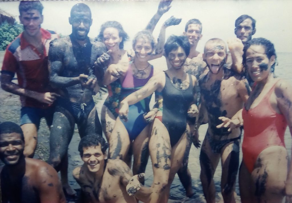 Al salir el grupo del agua, empezamos a embarrarnos de arena, pero en aquel piquete de 18 malnombristas los jodedores estaban a la “orden del día” y del embarre pasamos a un tiradero de arena, con corretaje incluido. La “guerrita” de arena fue tal, que hasta algunos bañistas ajenos al grupo cogieron sus salpicadas. Tuvimos entonces que llamarnos a la cordura.