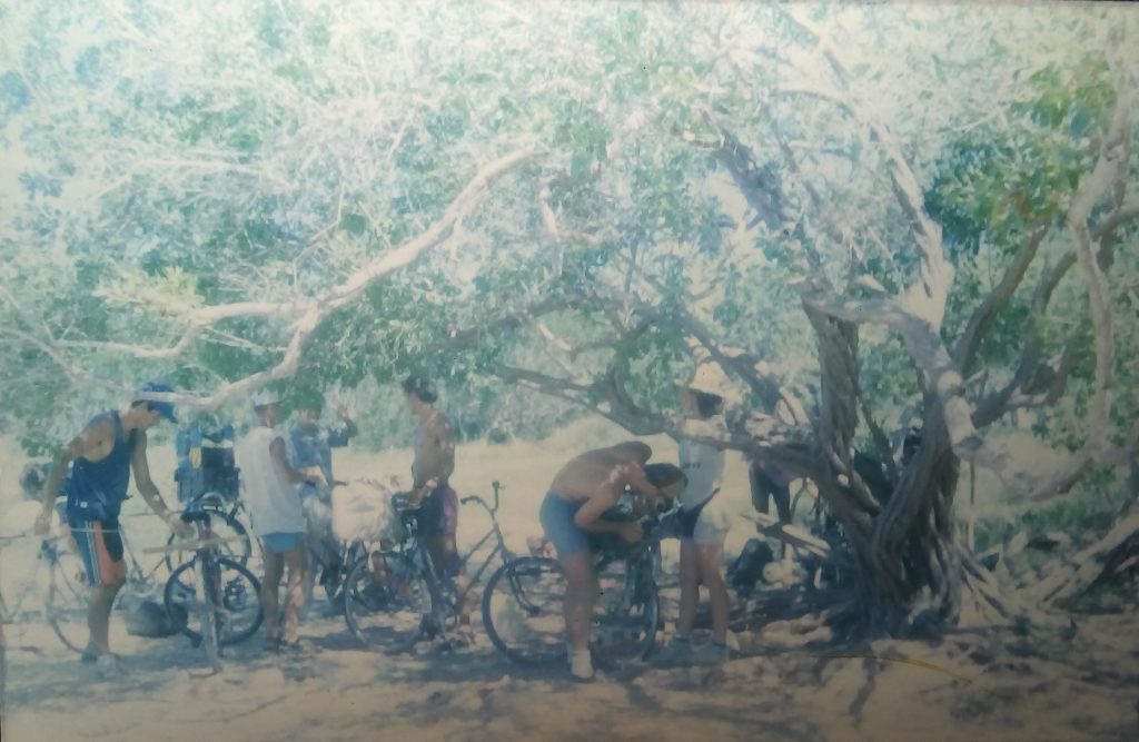 Mientras tirábamos un cubo con una soga al fondo del pozo y sacábamos agua, los mosquitos comenzaron a “avisarse”. Aquello se convirtió en una batalla campal. Nos apuramos lo más posible y salimos de prisa, pedaleando con furia.