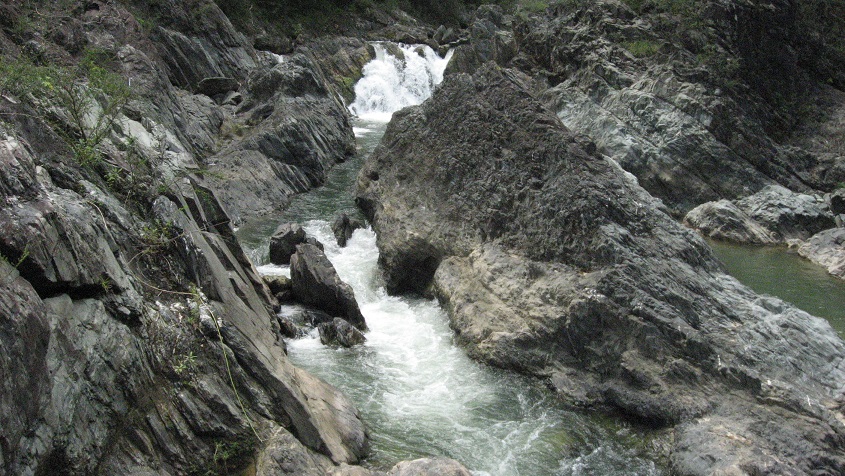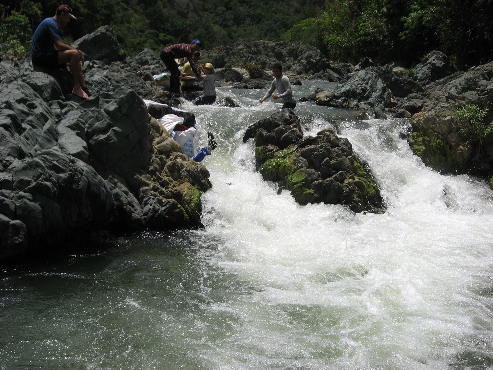 Después de bajar un chorro entre dos piedras, que nos dejó sin balsas a varios, sobrevino un rápido inquieto por el que algunos pasamos airosos y otros no. Al seguir el avance, comenzamos a escuchar un fuerte ruido hacia adelante. Detuve a la flotilla, atraqué mi balsa en la orilla derecha y me asomé a ver, para comprobar que habíamos llegado a las Cuchillas del Toa, el tramo más accidentado del extenso y caudaloso río.
