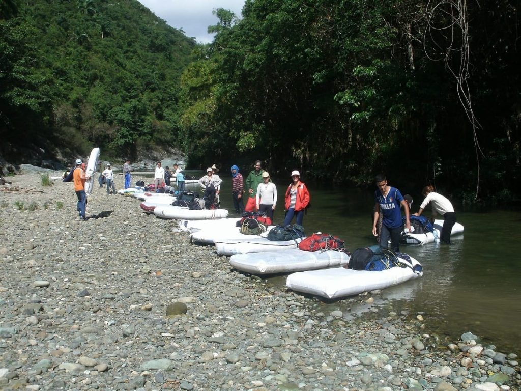 Recogimos el campamento y llevamos para el agua las mochilas, las balsas y sus forros protectores. Al sentarme sobre mi balsa, me sentí dueño de la situación; el pie no sería un estorbo. Solo tendría que apoyarlo en algunos momentos, pero mi experiencia en navegar por el Toa y mi entrenamiento en natación serían claves para sortear los diversos obstáculos que tendría por delante. Finalmente, partimos cuando los relojes macaban las 9:21.