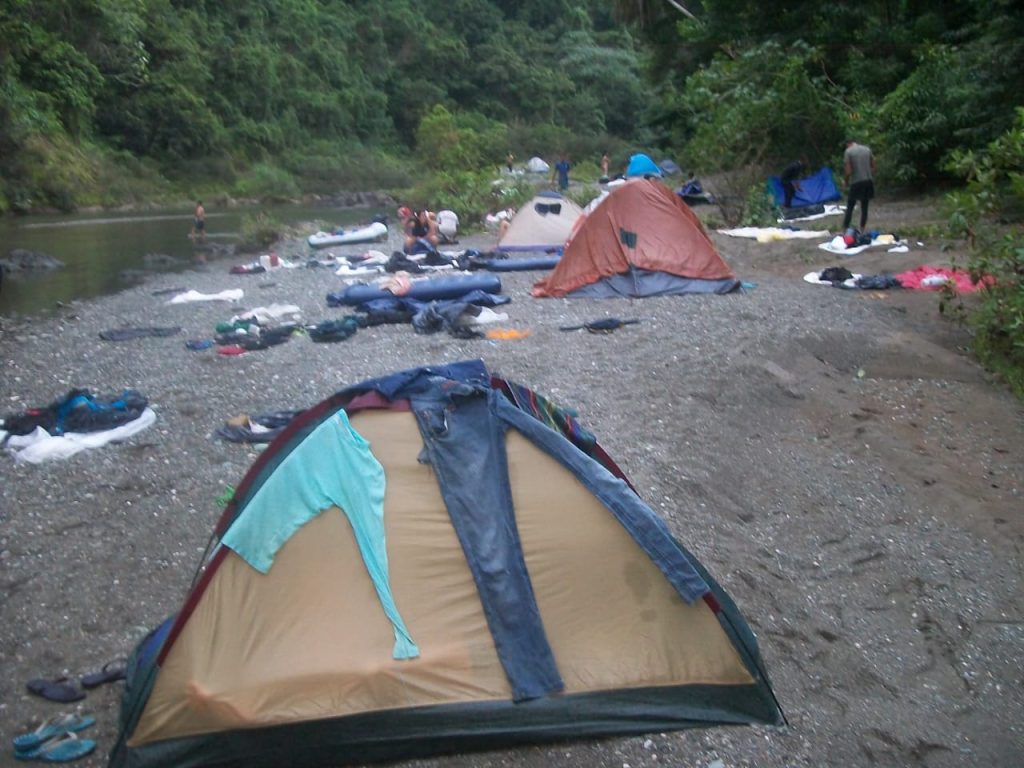 A las 4:30 de la tarde vimos una buena playa a la izquierda y decidimos acampar allí, ya en Mal Nombre (la zona que le dio nombre al grupo). Poco a poco fue llegando la gente al lugar y la “bomba atómica” se fue extendiendo con el reguero de ropa tendida sobre las piedras de la playa. En la otra orilla, junto a una aguada que saltaba, Edgardo y Janett tendieron sus ropas. La retaguardia llegó pasadas las cinco.