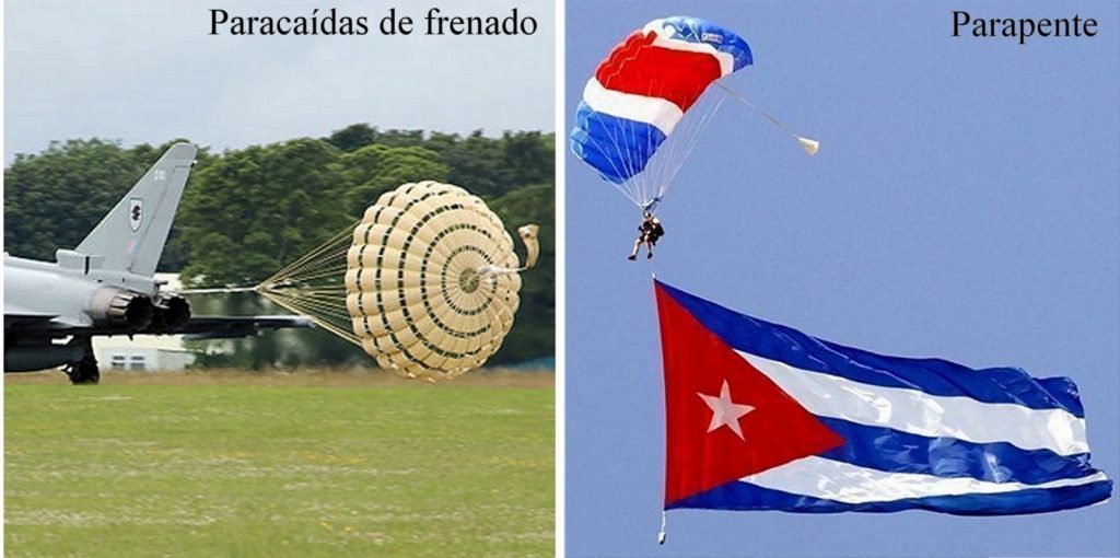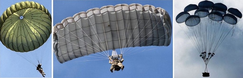 Paracaídas. https://ceoshop.com.ar/product/paracaidas-militar-historico-de-malvinas/ y https://www.fxcguardian.com/product/mach-v-military-freefall-parachute-system/.