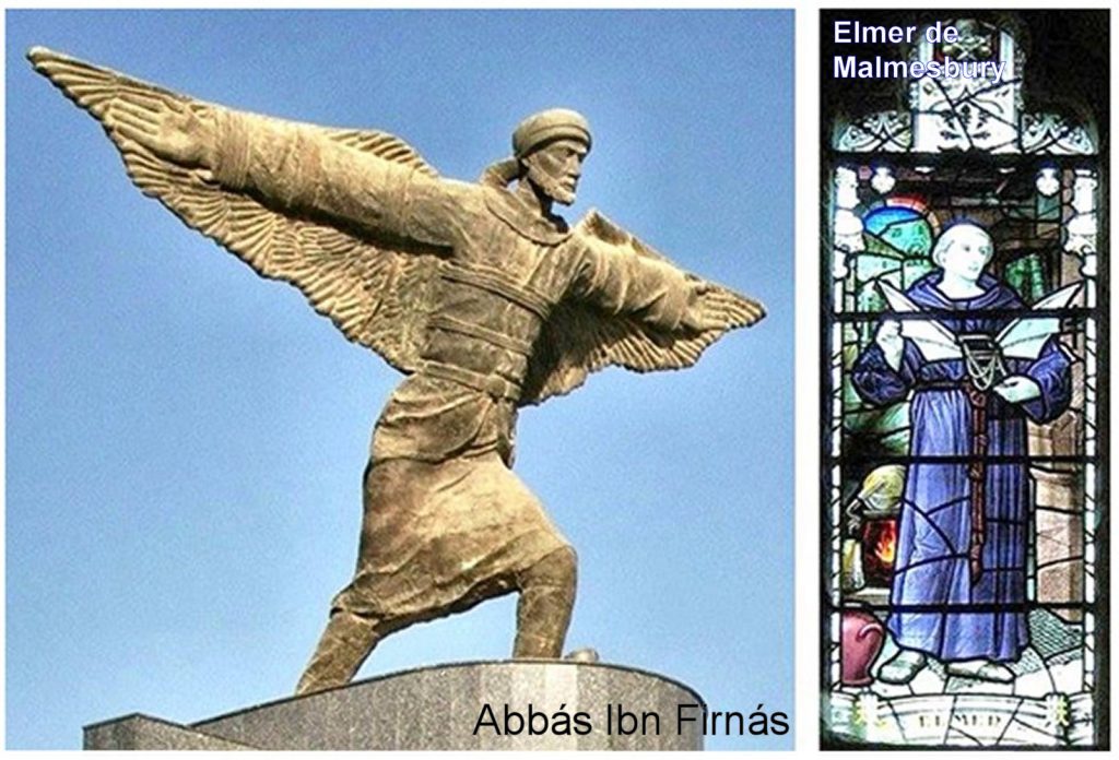 El monje Eilmer (o Elmer) de Malmesbury, hacia el año 1010, se lanzó desde la torre de la Abadía de Malmesbury en Inglaterra, usando un mecanismo similar al de Abbás Ibn Firnás, pero consiguió mantenerse en el aire sólo unos pocos segundos. Recorrió unos 200 metros y, al igual que su antecesor, se estrelló fracturándose ambas piernas.