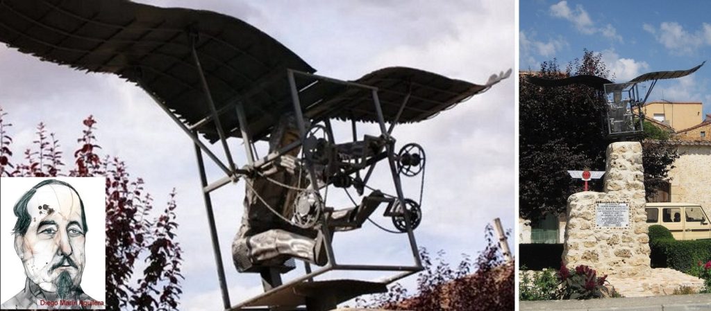 El español Diego Marín Aguilera (1757-1800) fue la primera persona en realizar un vuelo propulsado, usando unas alas artificiales movidas por ruedas y cadenas. Con aptitudes para la mecánica, había ideado pequeños dispositivos para facilitar el trabajo de los vecinos de Coruña del Conde, su pueblo natal en Burgos.