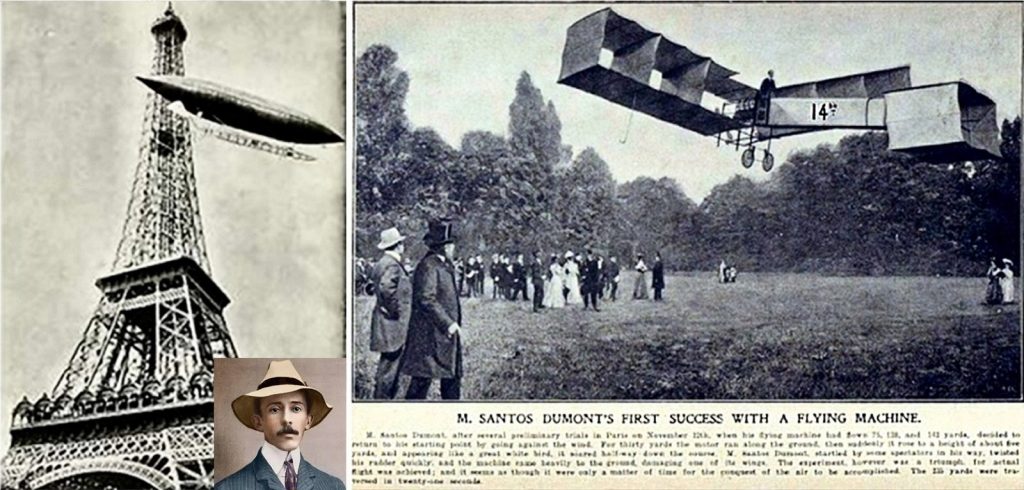Aún hay controversias sobre quién fue el primero en volar un aparato más pesado que el aire propulsado por un motor. Por una parte aparecen los hermanos Wilbur y Oliver Wright, en los EE.UU. Por la otra, el brasileño Alberto Santos Dumont, en Francia. Los estadounidenses dan la primacía a los Wright y, como era de esperar, los brasileños a Dumont.