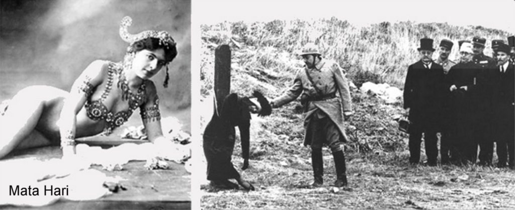Ese fue el caso de la holandesa Margaretha Geertruida Zelle, espía alemana durante la primera guerra mundial, más conocida por su nombre artístico Mata Hari. Tras divorciarse y comenzar a trabajar en París como modelo, la falta de recursos económicos la llevó a hacerse pasar por una princesa javanesa ─ país donde había residido junto a su esposo militar ─ y montar espectáculos de striptease en los que se desnudaba casi totalmente.